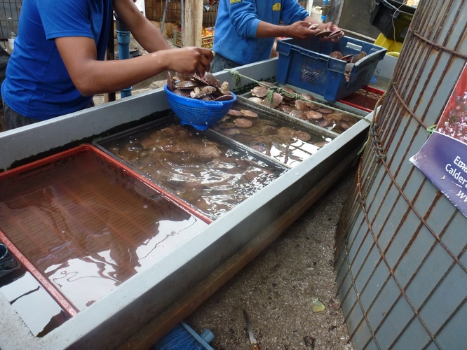 Al vaciarse las piletas los productores se colocan el chaleco salvavidas y se adentran al mar en busca de una buena cosecha. Y el ritual vuelve a comenzar.