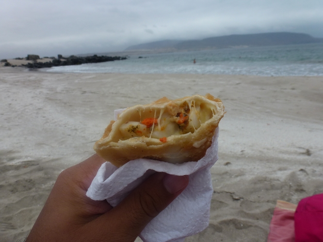El precio es generalmente regular, las empanadas de ostión y queso se consiguen por unos 3US$, las de queso solo 2US$, los ostiones vivos para elegir y comer de parado a unos 0,50US$ o 6 unidades por 5US$ si lo sirven ellos. Para que tengan una idea, el dólar al día de hoy en Chile está a unos 524 pesos chilenos.