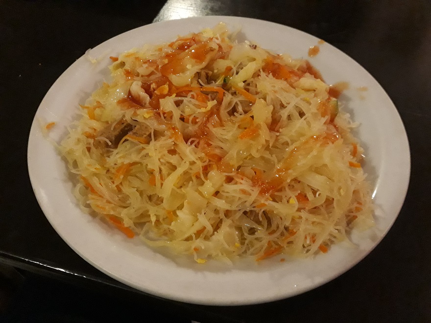 Pedimos una entrada Ravioles chinos (x6 u. $75) para compartir que al final tuvo su refill. El principal en mi caso fue Chaw Mifen Agripicante ($120), un salteado tan desabrido como poco fotogénico y para tomar un licuado de verdura, puntualmente el de Zanahoria con naranja ($55) que me trajo muchos recuerdos de mi niñez.