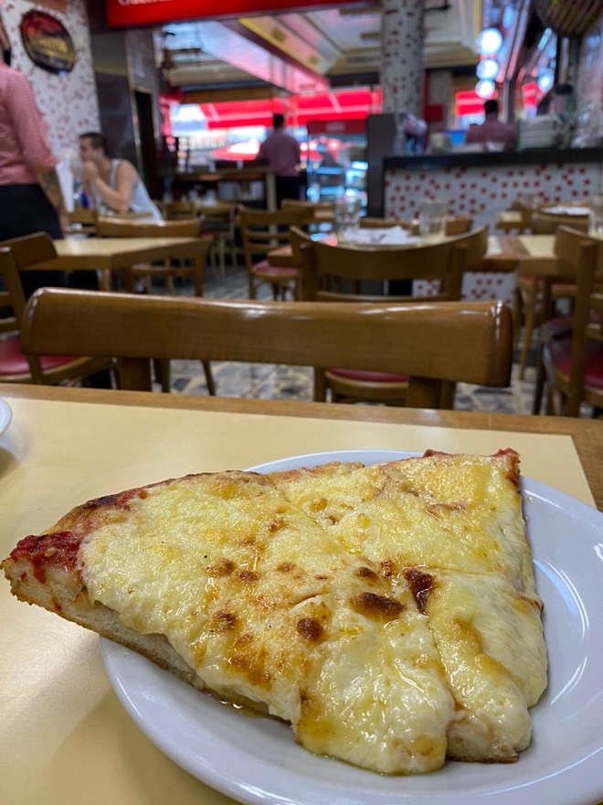 Pues yo no soy nada de todo eso pero también quise probar las célebres pizzas al molde y con abundante queso de la calle Corrientes.