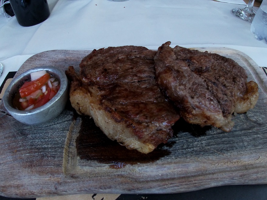 Pedimos una provoleta al horno para romper el hielo y luego un surtido de carnes y pastas. Todo acompañada de un exquisito pan casero y bien regado con un malbec Kaiken Estate.
