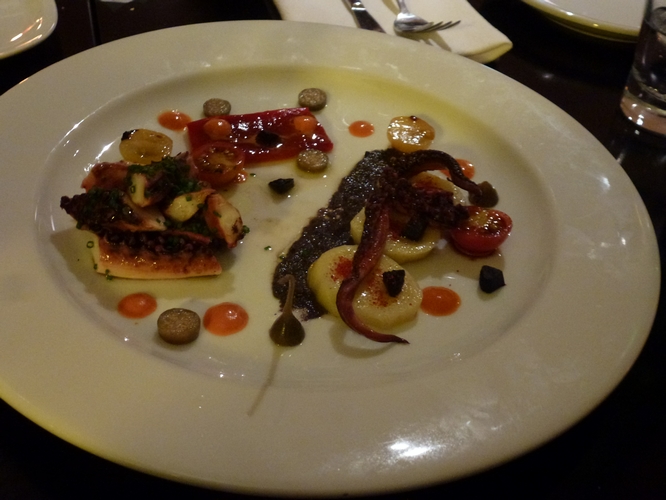 La cena había comenzado por lo que era momento de pedir la entrada, en este caso me llamó la atención un plato de mollejas pero preferí, como lo hago generalmente, aceptar la recomendación de la gente del lugar. Pedí un plato con jaiba peruano acompañado de papas natural y tomates cherry que estuvo bien, aprueba pero sin sobrarle nada como marcando una meseta en la cena.