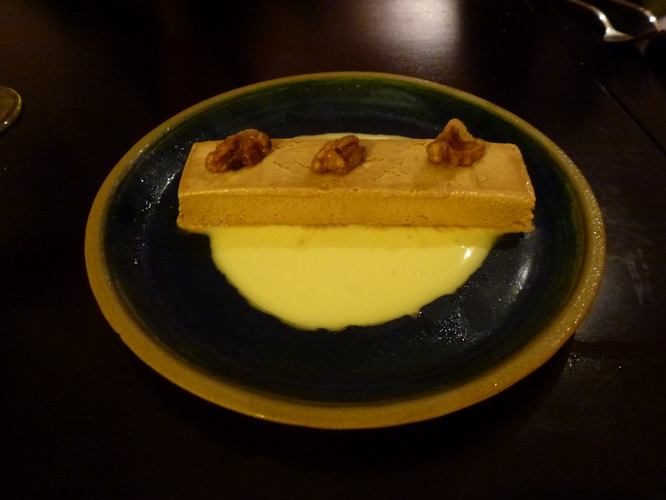 Finalmente llegó el momento de dar lugar al postre, un Semifreddo al café, crema inglesa y nueces tostadas que se mantuvo alineado con lo anterior: impecable.