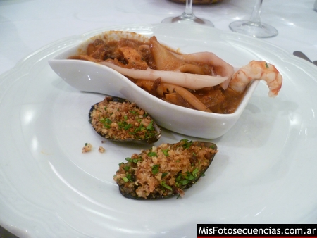 El Celta es un restaurante marisquería del cual ya les hablé en alguna oportunidad. Aquí nos recibieron con una deliciosa cazuela de mariscos, un vino blanco que acompañaba correctamente el menú y muy buena onda. Los mozos, el responsable del lugar y hasta el cheff se acercaron a saludar, mimetizandose con los de la mesa que nos moviamos de un lado a otro, tomabamos fotografías y hasta jugabamos con un pimentero gigante.