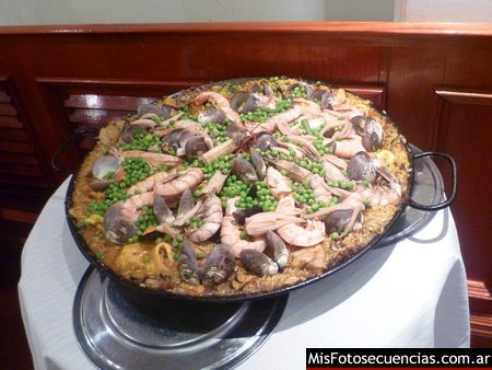 Pasada la cazuela llegó la gran vedette de la noche, la paella. La pealla se presentó directamente en el caldero y nuevamente comenzó el show de fotos, chistes y charlas.