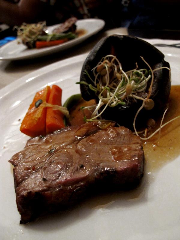 - Bondiola de cerdo braseada con salsa de whisky y yorkshire pudding de vegetales y brotes.