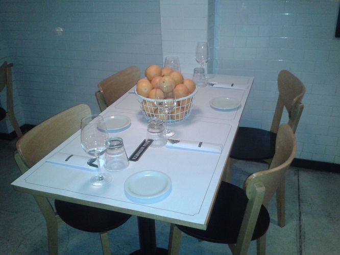 Si bien mi reloj biológico todavía no indicaba que era horario de cenar, entré para leer la carta y volver luego de darme un baño reparador. Mientras me acomodaba en la barra, quién me abrió la puerta comentó que trabajan con reserva, que no disponían de lugar para pasada las 21:30 hs. pero que la cocina estaba funcionando desde las 20hs porque «aquí vienen muchos extranjeros y ellos cenan temprano«. Me ofreció la carta y mientras comentaba algunos aspectos del restaurante explicó que faltaba unos noventa minutos para la primera reserva, por lo que si yo quería podían ofrecer el servicio pese a no haber reservado previamente. A su espalda, la cocina a la vista inclinaba la cancha dejándome casi sin opciones. Sucumbí a la tentación, tomé asiento y me quedé a cenar.