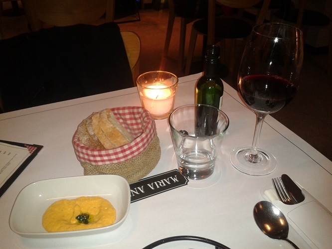 Insisto que el risotto estuvo muy bien pero que visualmente no invita a ser probado. También insisto en que se nota que está pensado como un bistró cool por lo que no creo que estos detalles sean casuales sino más bien cuidadosamente determinados así. De todas formas, si nos dejáramos guiar por sabores y otros aspectos que completan la experiencia gastronómica,como que aceptan tarjetas, tienen un trato amable como jamás encontraríamos en un restaurante de Córdoba, mantienen un nivel de servicio que en todo momento me hizo sentir «cuidado«, entre otros, me animo a decirles que María Antonieta Resto es un lugar para recomendar sin temor a equivocarme y al cual pienso volver a visitar en algún otro viaje a Mendoza.