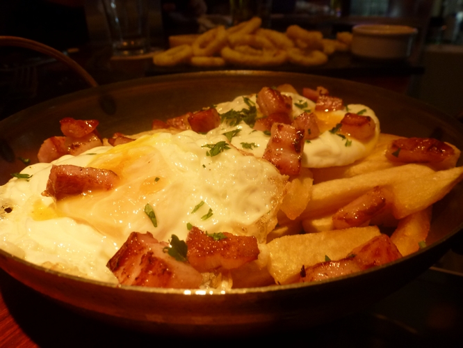 - Huevos rotos con panceta