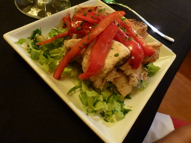 En primera instancia pedí Sesos ($29) de la carta de sugerencias. Esta entrada es una ensalada realizada con sesos con limón, aceite y perejil que es realmente exquisto para comerlo untado en pan árabe caliente y acompañado de un Chardonay Ampakama ($55). Valga la recomendación de comerlo untado en pan dado que al comerlo solo puede que su textura no resulte de lo más agradable, pero el sabor si lo es y es por eso que lo recomiendo.