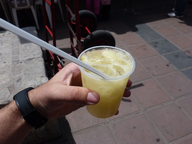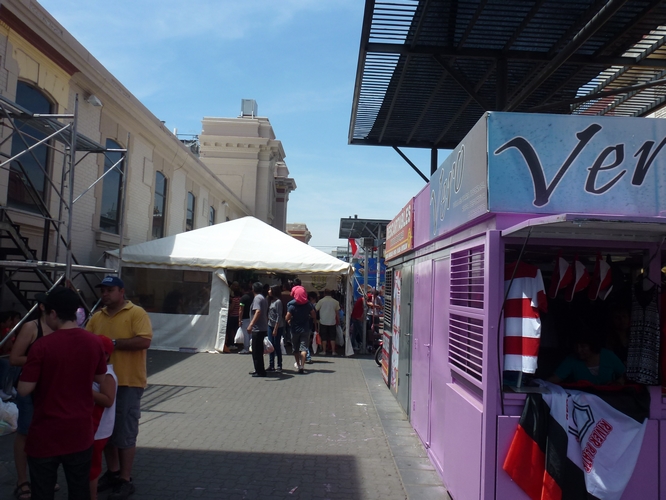 Los stands eran chicos, sin infraestructura para vender a gran escala. El menú se disfrutaba de parado o, como yo, en una mesa que encontré desocupada pero todavía con la mugre del anterior comensal… al menos la parte que no alcanzó a caer al suelo empujada por el viento. No ví gente de la organización, ni del mercado cuidando este tipo de detales. Ni ningún otro.