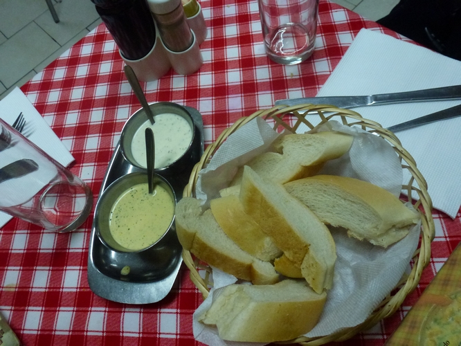Para amenizar la espera del plato principal el mozo se encargó de traer una panera con salsas muy ricas pero que no llegué a preguntar su nombre ni como las elaboran. Solo puedo decir que una era suave y la otra era más picante de mil infiernos. El picante se hizo sentir y abrió la cancha a la Cerveza Cusqueña que me acompañó el resto del almuerzo.