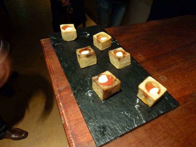 El Segundo rockandtapas delicatessen fue nuevamente para un público reducido, allí el chef Federico Czarlinski volvió a hacer un repaso por toda la geografía española expresado a su manera, a través de un menú de seis pasos (más una perlita fuera de programa como ya nos tiene acostumbrado). A diferencia de la anterior, esta cena contó con la presencia de la sommelier Silvina Carranza quién en representación de la bodega Familia Zuccardi se encargó de explicarnos los maridajes, a la vez que trajo a la mesa un poco de historia y anécdotas de la familia.