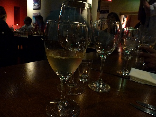 El cierre de la cena fue con un shot presentado fuera de programa, una copa de vino espumante y un interesante cruce de palabras con Sergio Serrano y Federico Czarlinski.