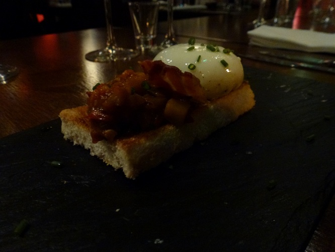 Tosta de pisto manchego con huevo poché