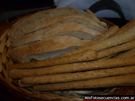 El pan era «de campo» como me gusta y los grisines de salvado, supongo que, por si alguien está cuidandosé de no perder la línea de cara al verano.