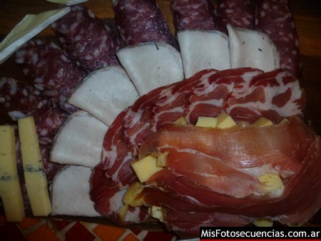 La tabla estuvo compuesta por salame, lomo a la finas hierbas, bondiola, jamón crudo y variedades de quesos. Además de una entrada(dita) de olivas negras y verdes.