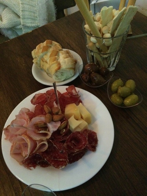 – Picada de fiambres (se llamaban primera, segunda, tercera, etc y no recuerdo el nombre), todo cortado en el momento (se nota y aprecia la calidad): salamín tipo fuet, lomito, jamón crudo, queso gruyere y mar del plata. Aceitunas especiadas.