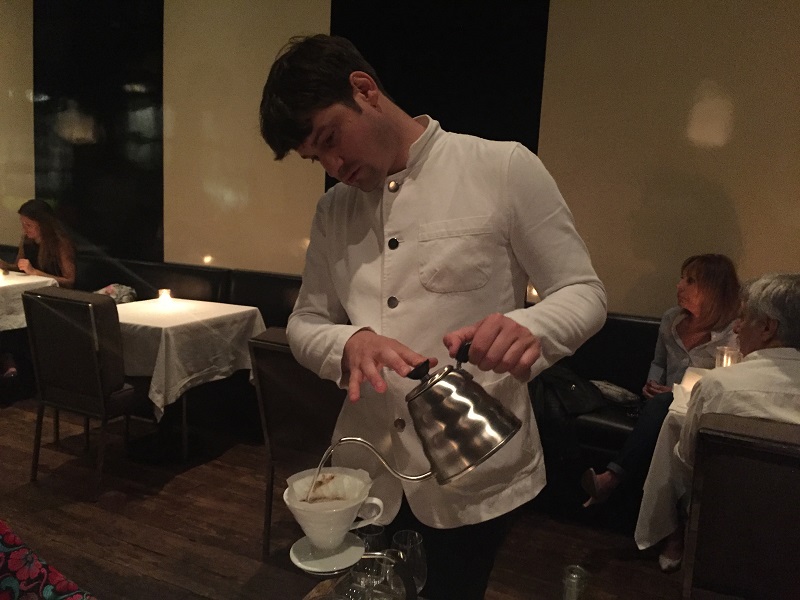 Cada paso del menú fue realmente algo muy bueno, con sabores genuinos y todo lo que fuimos a buscar. El cierre fue con un café filtrado servido en copa, no se si para conservar los arómas en la copa o porque estábamos en Palermo y… bueno, ustedes ya saben lo que es Palermo. 🙂
