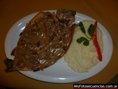 Esas cosas locas de la burocracia geográfica hicieron que mi destino, pese a estar en una localidad, quedara mucho cerca del centro de otra ciudad distinta a la que me albergaba. Pués con ese rumbo, el más cercano, salí una noche en busca de alimentos. Recorriendo el centro de Mina Clavero, a pocas cuadras de la peatonal, dí con un lugar que ofrecía Truchas y Pejerrey y sucumbí a la tentación.