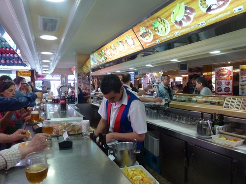 Ahora si, ya con una idea de que ofrecen en el Museo del Jamón me dedique a probar bocadillos, tal como denominan a los sandwiches, y tomar cañas acodado en la barra como es su costumbre. Repitiendo en función de lo que me llamaba la atención en el mostrador, hasta salir satisfecho y con fuerzas para seguir caminando la ciudad.